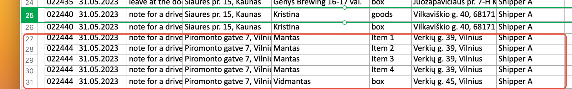 As you know, orders can be imported to Track-POD with Excel or CSV files. You can easily import orders with multiple items with spreadsheets too. The procedure is the same, you just need to have a separate entry for each item with the same order number, delivery date, delivery address, and the customer's name.