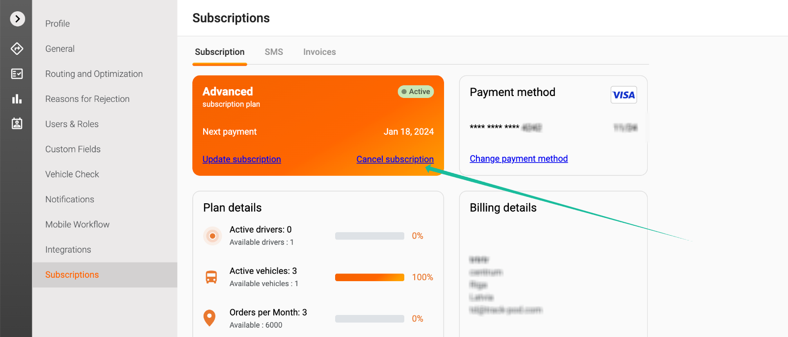 1. Within the Settings menu, find and select the Subscription tab. This section contains all the details related to your current subscription plan.