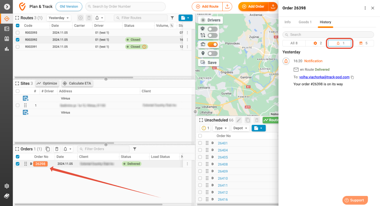To begin, navigate to your order details. Click on the specific order you want to check, then select Order Details. Here, you will find a section labeled History. This area provides a comprehensive list of all notifications related to that particular order. You can view their statuses, including whether they were successfully sent or if there were any errors encountered during the process.