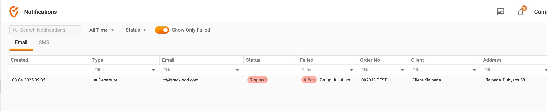 If you want to focus on notifications that did not go through, simply turn on the toggle labeled Show Only Failed. This will display messages that have not been delivered, along with the reasons or errors specified. This feature helps you quickly identify and resolve any issues.