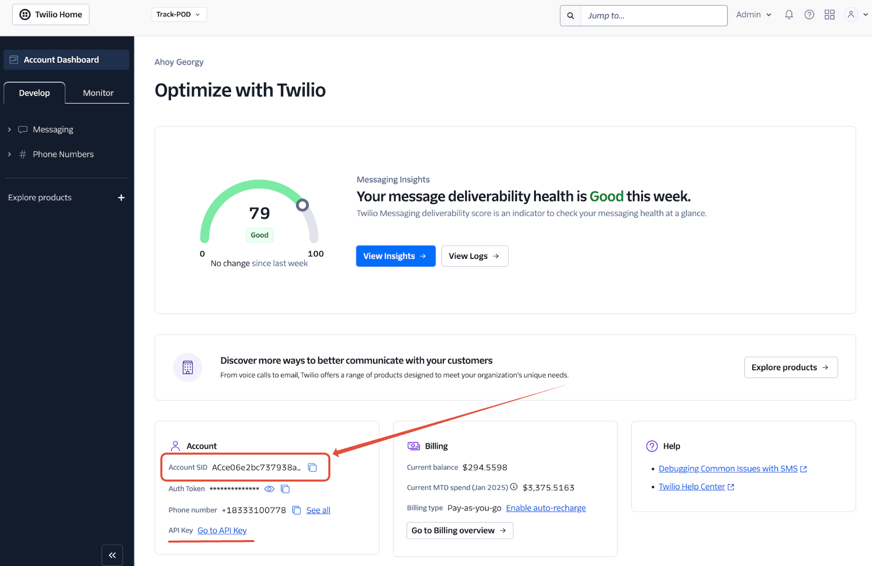 - This unique identifier can be found in your Twilio General settings. It is essential for authenticating your API requests.
