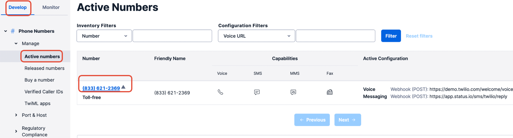 4. Enter Your Twilio Phone Number or Alphanumeric Sender ID: