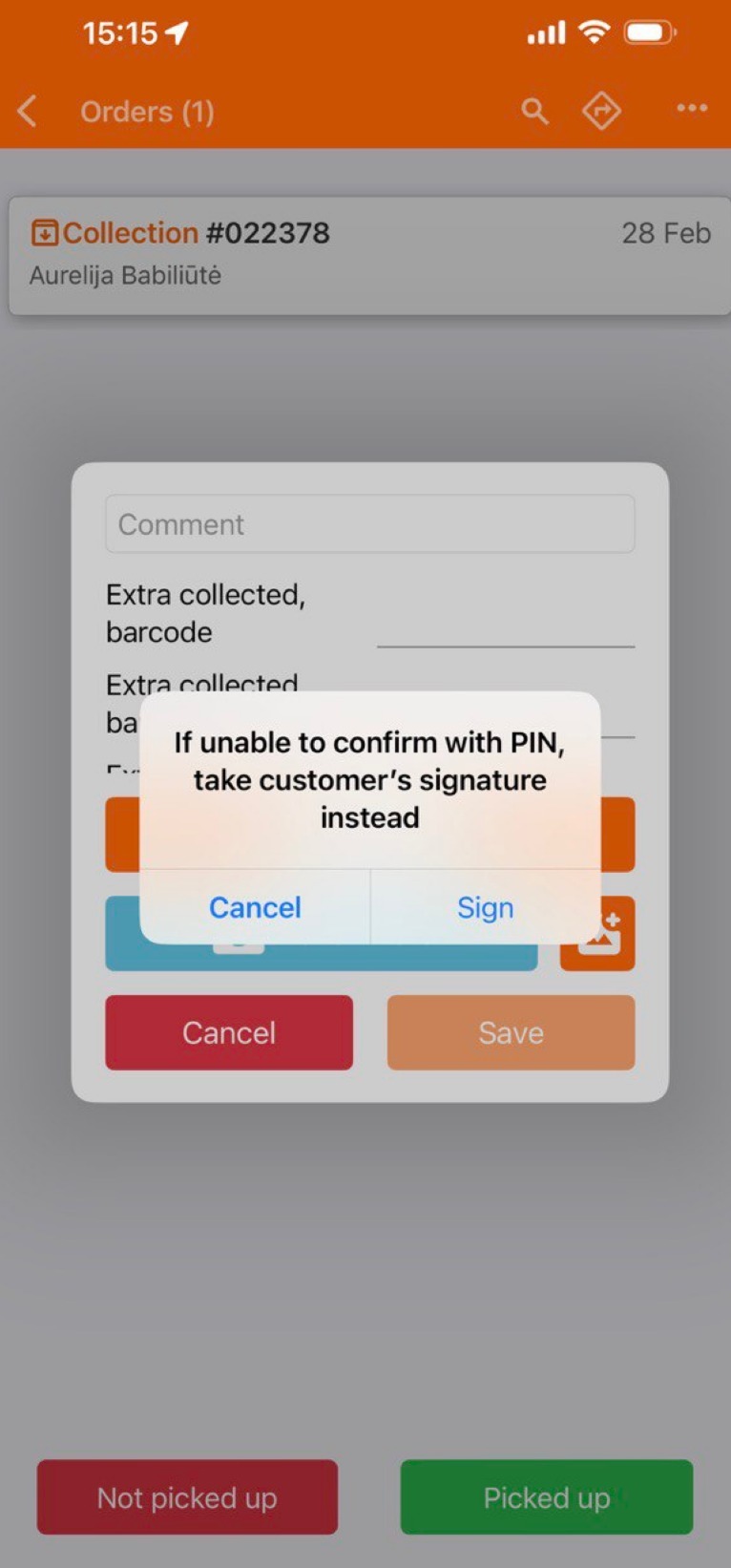 - en Route: Communicate the PIN code when the driver leaves the previous location.