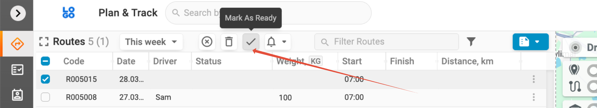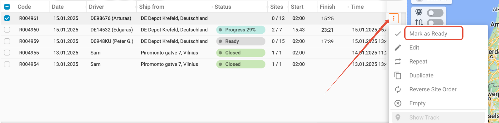 Once the setting is enabled, a new action will appear in the Route actions drop-down menu, allowing you to manage your routes more efficiently.