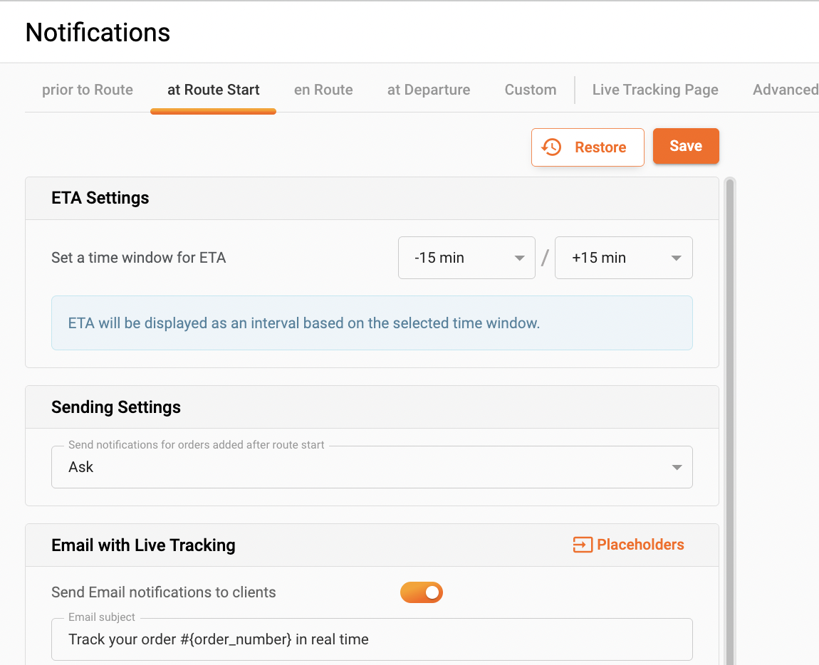 1. Global settings that apply to the whole account operation (e.g. en Route notification enabled / disabled).
