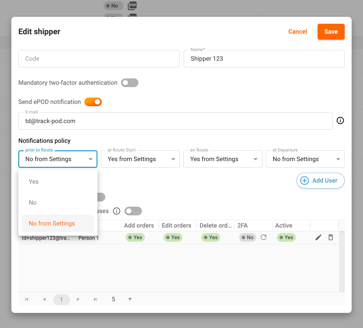 2. Shipper Level: At this level, you can tailor notifications based on the preferences of individual shippers. By navigating to Directories -> Shippers, you can select which notifications are sent for orders associated with each shipper. This allows for greater flexibility, as different shippers may have different notification needs or customer expectations.