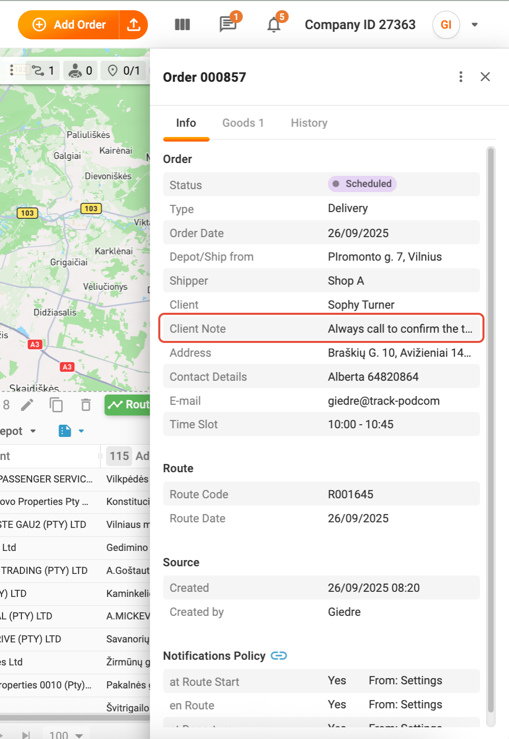 - The note will also be visible in the order summary, ensuring that all relevant information is easily accessible.