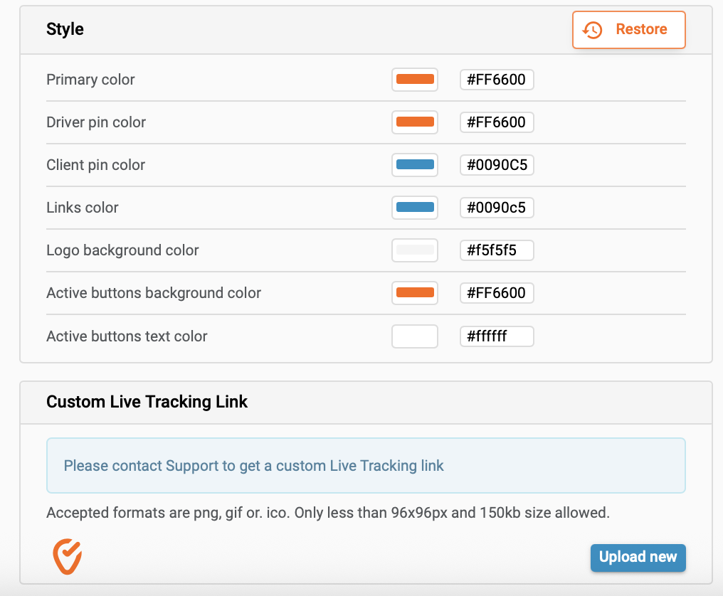 White labeling for the live-tracking page is an exciting feature available exclusively to our Ultimate subscription plan users. This functionality allows you to customize the appearance and branding of the tracking interface, ensuring it aligns seamlessly with your company's identity. By personalizing the live-tracking page, you can enhance the user experience for your customers, making it feel more familiar and trustworthy.