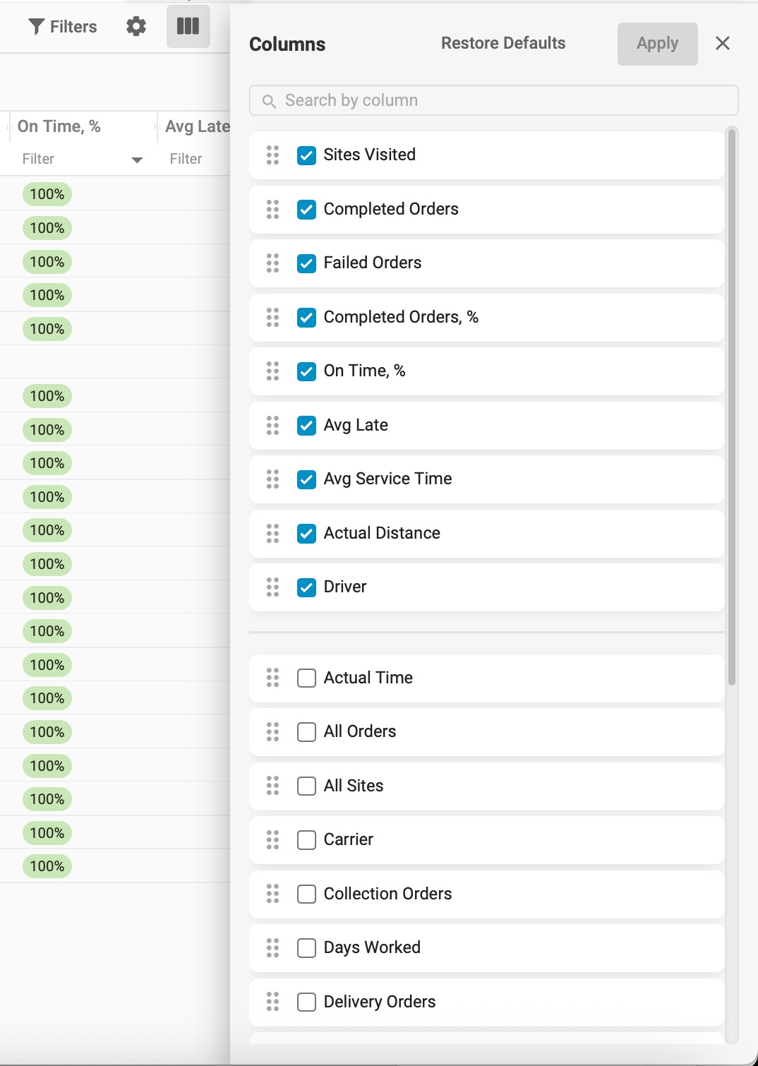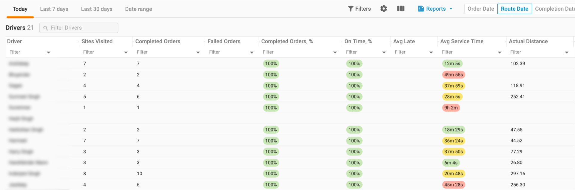 - Orders Completed: Monitor the number of orders successfully completed by each driver, helping you identify high performers and those who may need additional support.