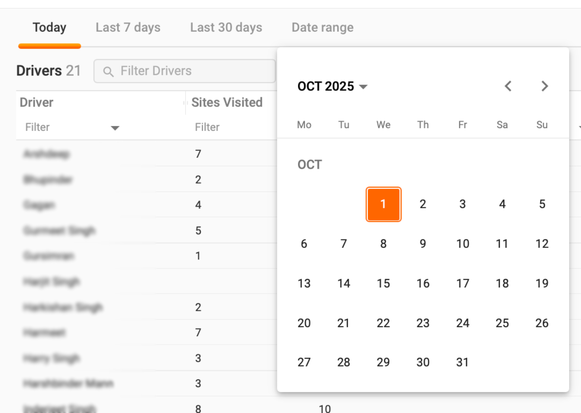 - Timeliness: Review the number of sites visited on time versus those that were late. This metric is crucial for understanding your drivers' punctuality and reliability.