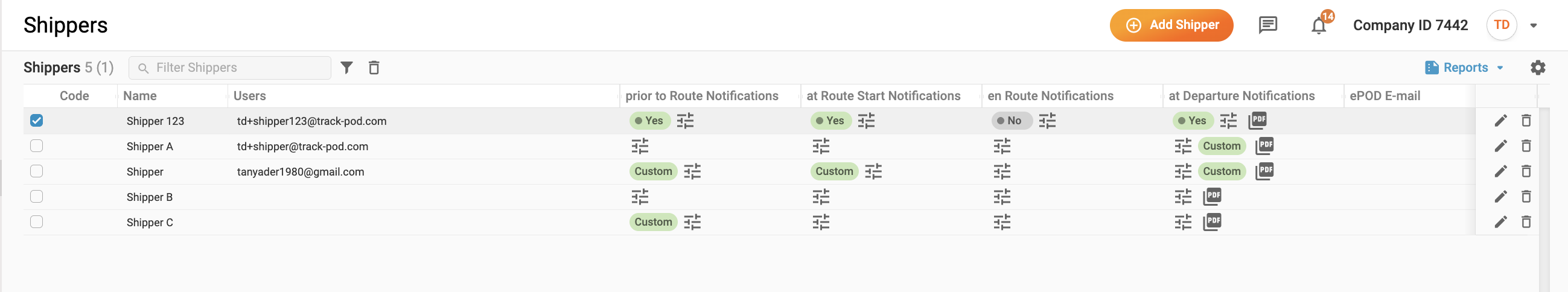 2. Notification Policy - Set up notification preferences for each Shipper or Client, or contniue using global settings.
