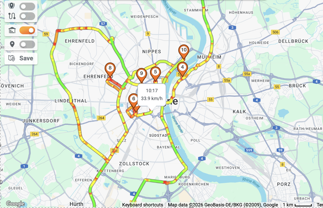 1. Coloured track with highlighted route sections (available in route actions Show track and Compare track to route)