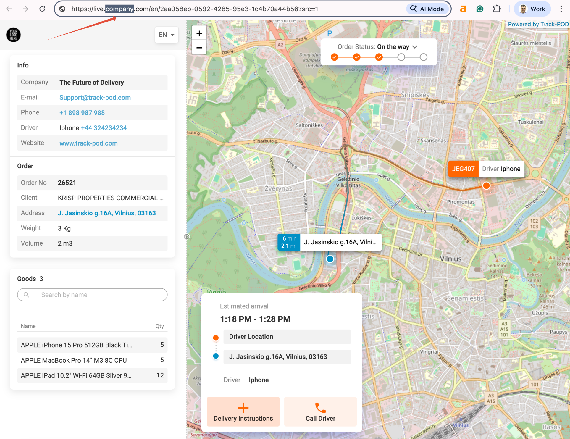 6. Live Tracking with Your Domain - Share live tracking links using your company’s domain.