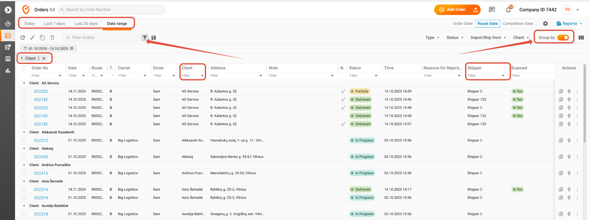3. Filter Your Orders: Use the filtering options to narrow down your orders by specific parameters such as client, shipper, or depot. You can also save these filters for future use, making it easier to generate similar reports later on.