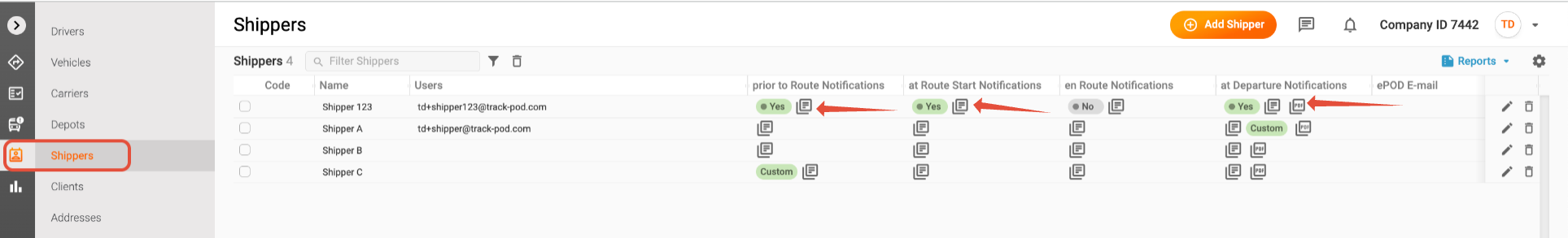 If your delivery business functions on behalf of multiple customers (referred to as Shippers in Track-POD terminology) under the Ultimate plan, you can establish tailored notification templates for each Shipper, both via email and SMS, to effectively relay information to their end clients.