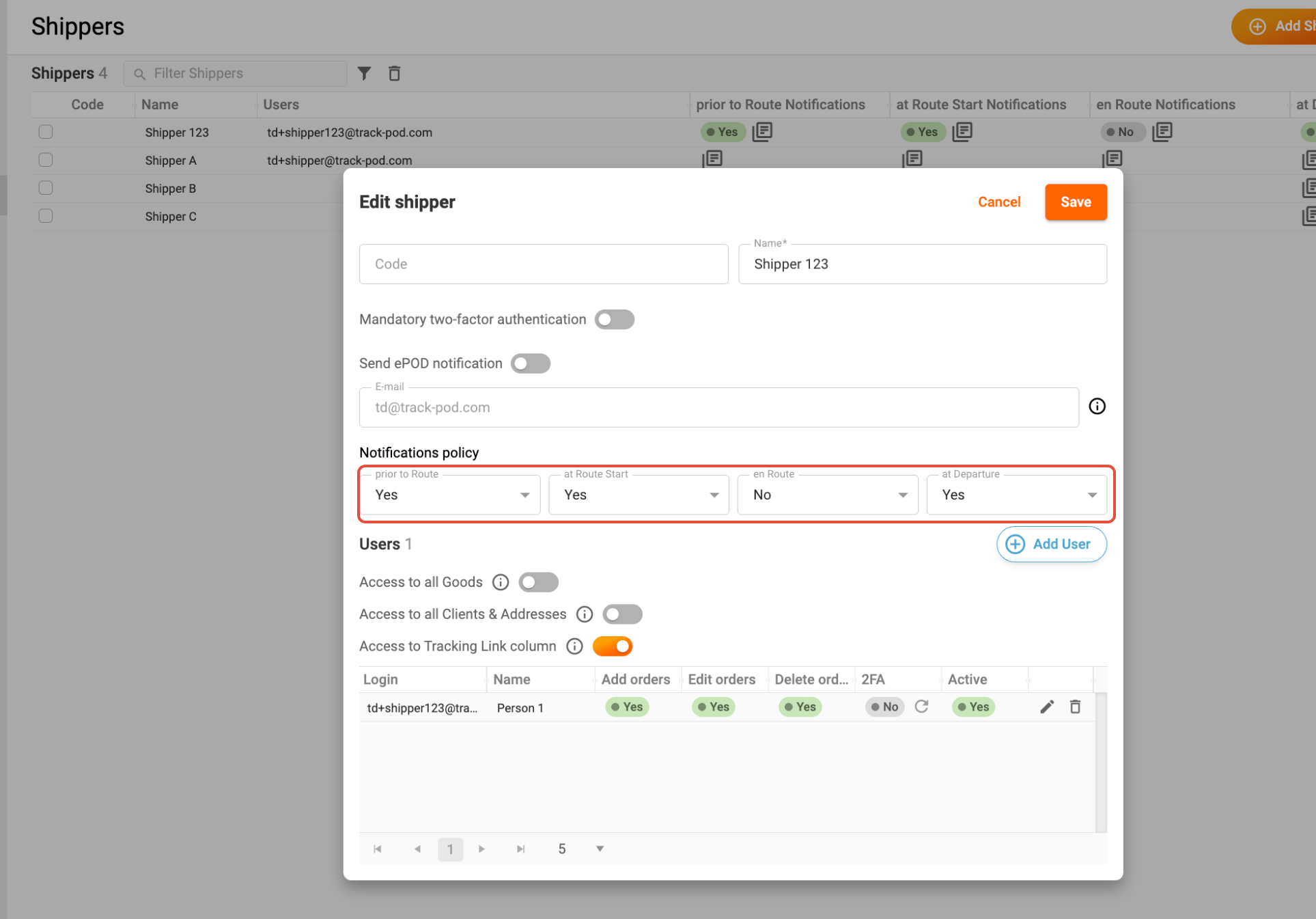 By following these steps, you can ensure that each Shipper receives the appropriate notifications, enhancing communication and satisfaction for both you and your clients.